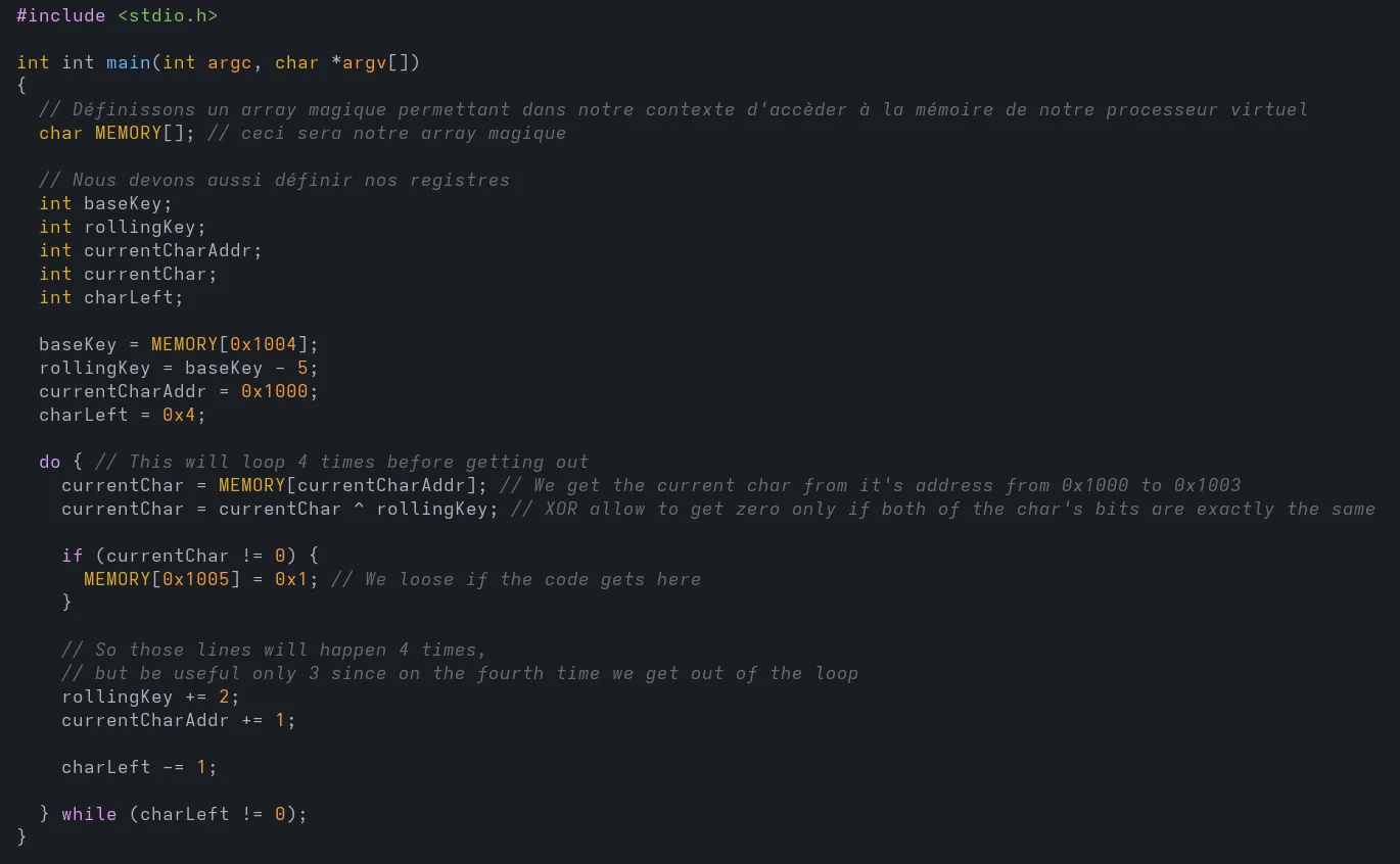 À partir de là, nous devons comprendre ce qu’il se passe dans le CPU virtuel pour déterminer comment garder isWrongFlag à false.