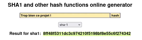 Et le même texte hashé sur un site en ligne :